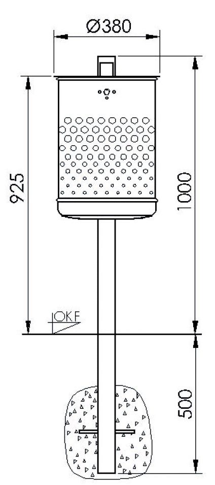 Abfallbehälter mit Pfosten, Inhalt 35 L, zum einbetonieren