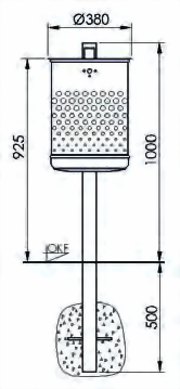 Abfallbehälter mit Pfosten, Inhalt 50 Liter, feuerverzinkt + pulverbeschichtet, zum einbetonieren