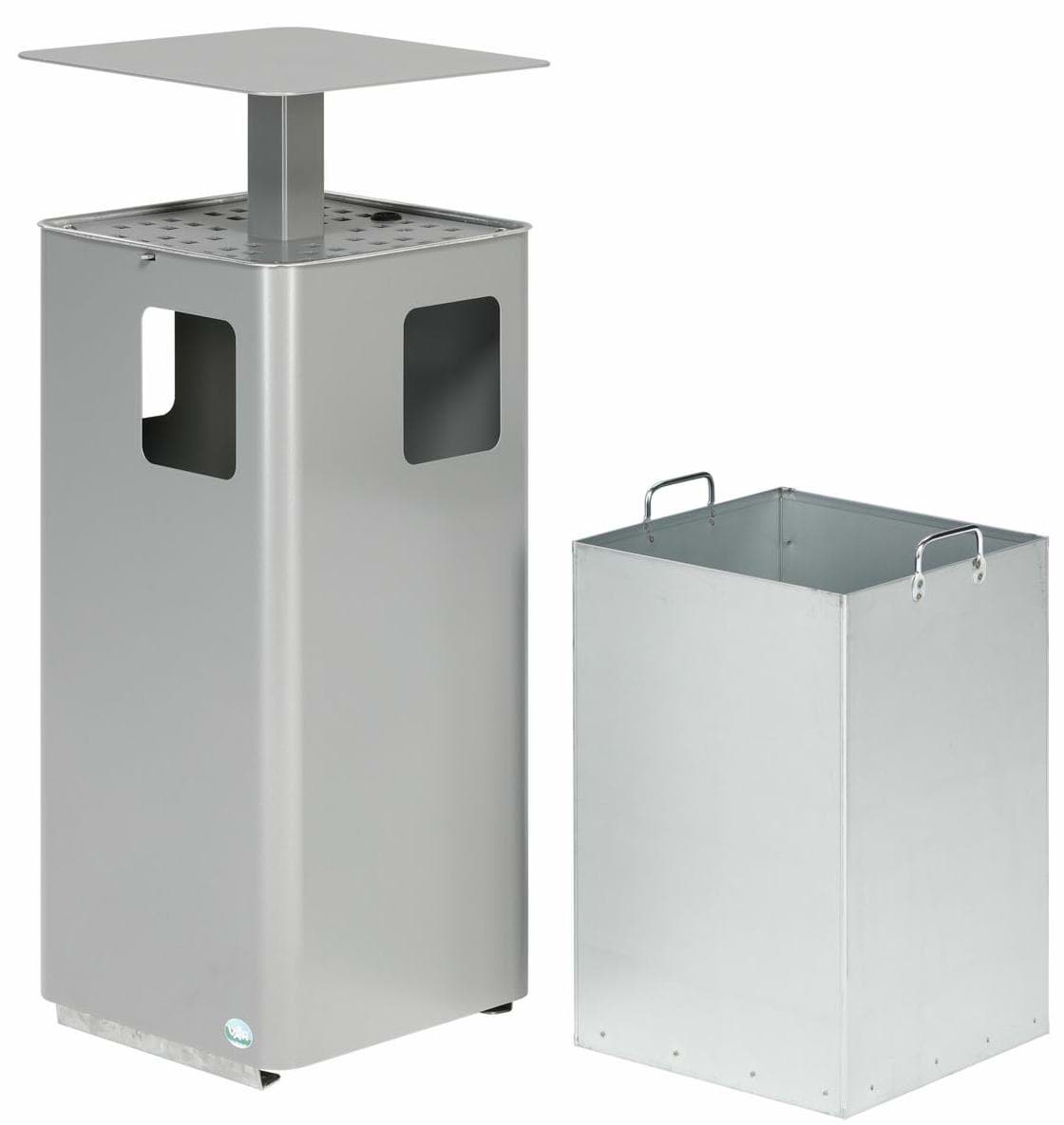 — mit Ascher und Abfallkorb aus verzinktem Stahlblech und hochwertig pulverbeschichtet