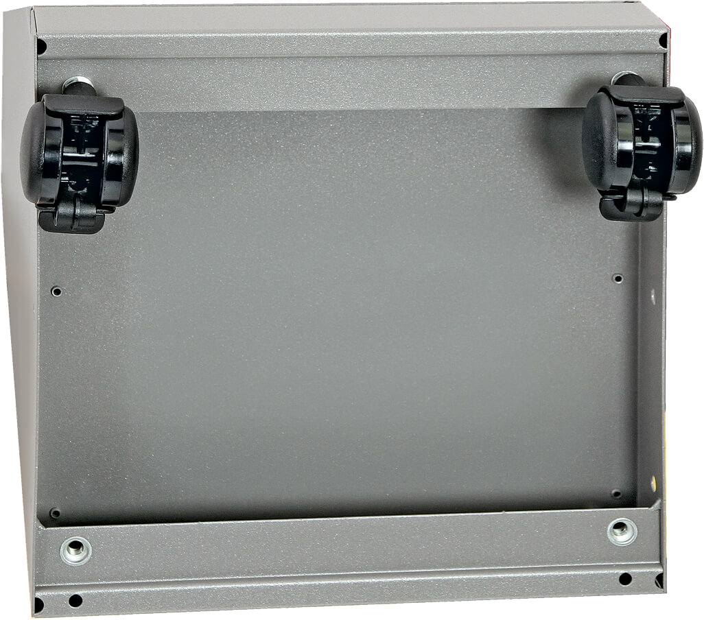 Satz Doppelrollen aus glasfaserverstärktem Polyamid, bestehend aus vier Doppelrollen (zwei davon feststellbar) und vier Aufnahmebolzen, die in vorhandene Gewinde im Behälterboden eingeschraubt werden. Farbe: schwarz, versandkostenfrei nur zusammen mit einer Abfallbehälterlieferung.