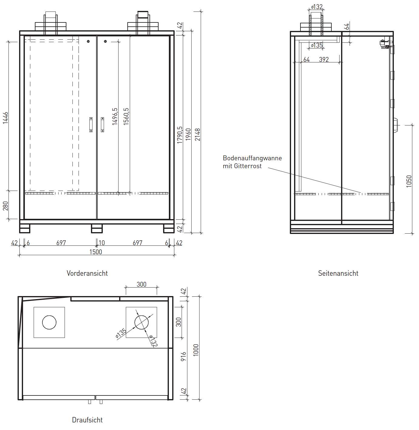 Abluftaufsatz 255x250x425 mm HxBxT