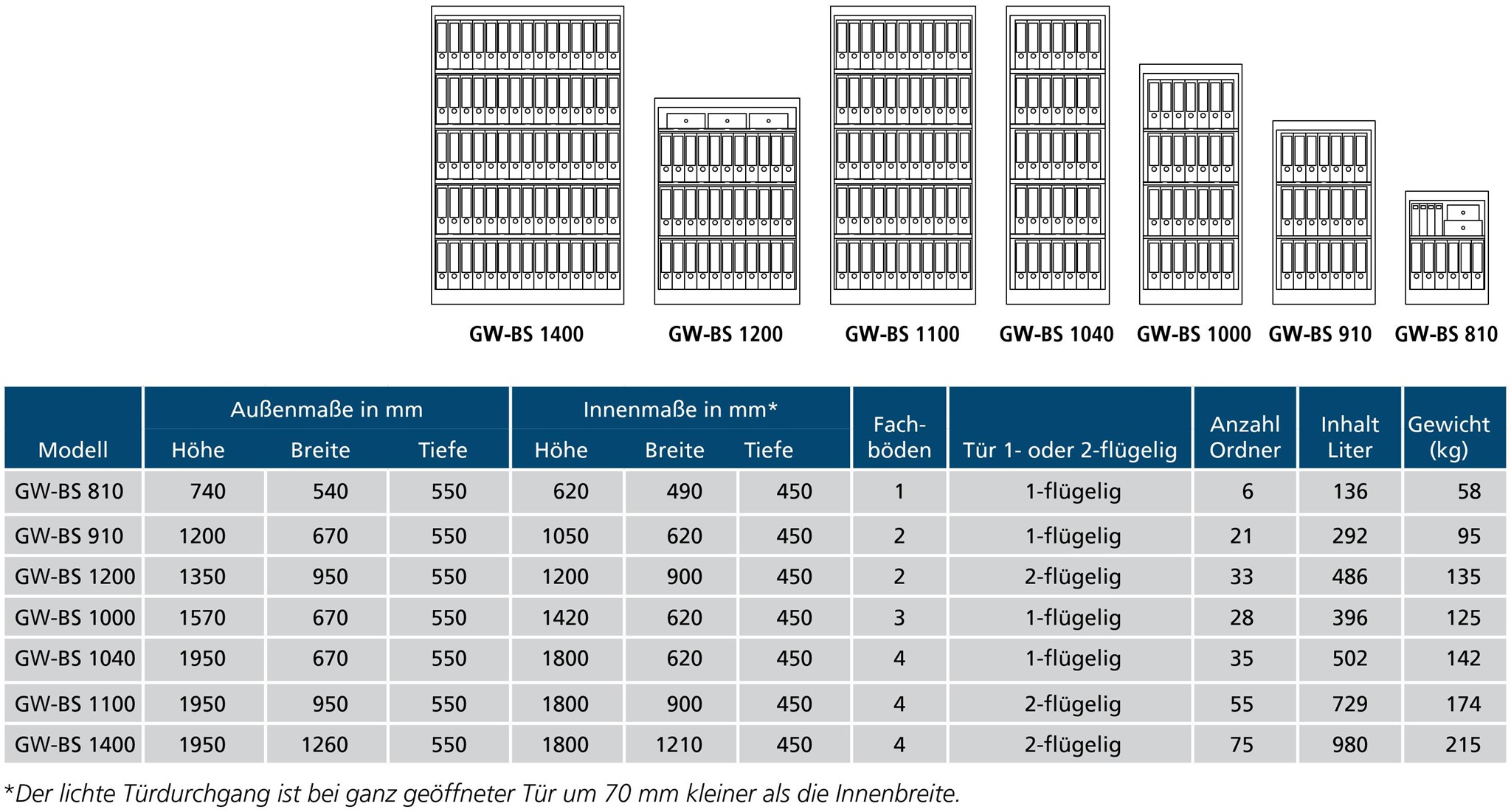 Aktenschrank GW-BS 1000, 1570x670x550 mm HxBxT, feuergeschützt