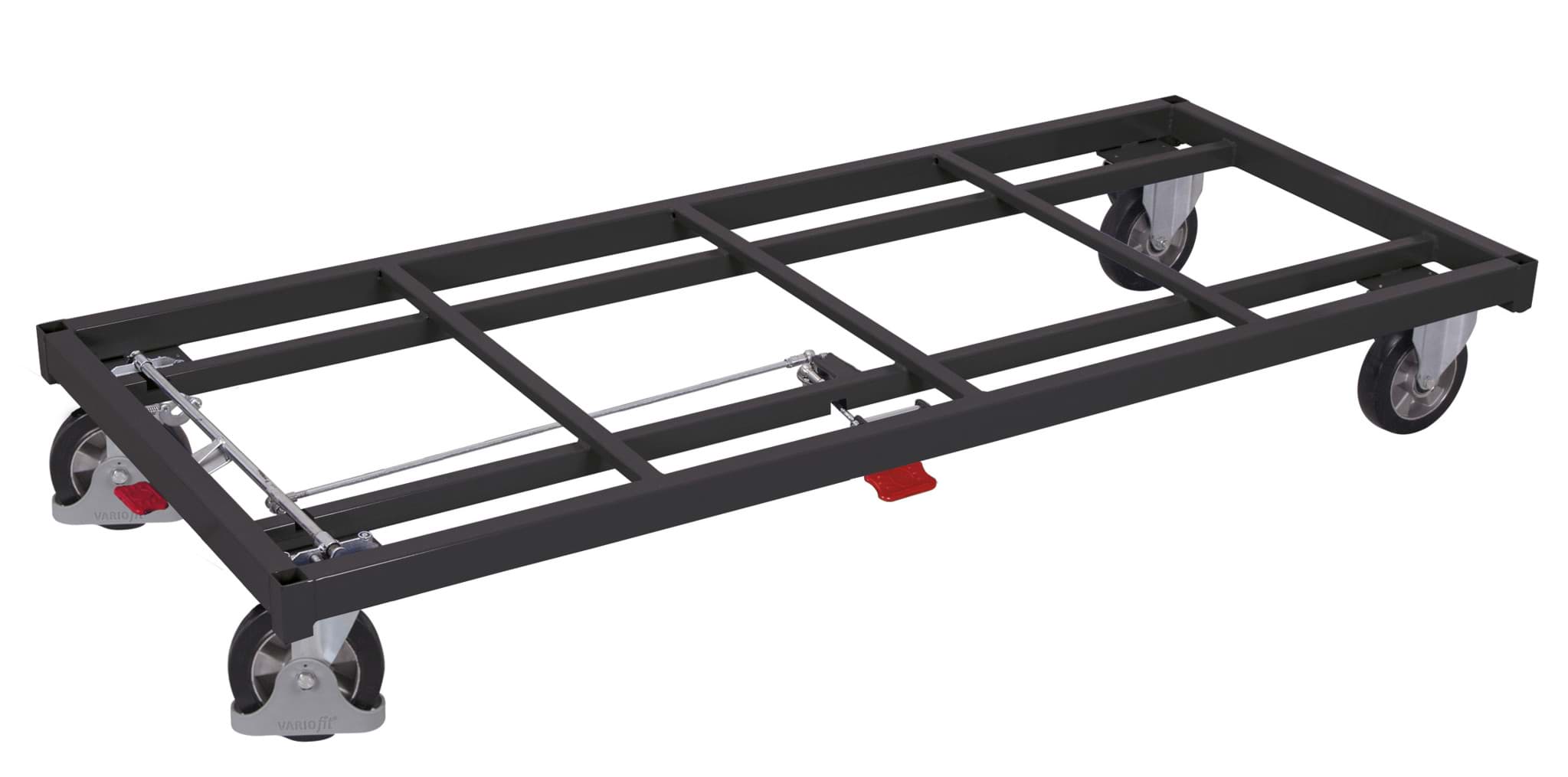 Bereifung aus thermoplastischem Gummi auf Kunststofffelge mit Präzisionsrillenkugellager, grau, spurlos, Ø 200 mm, 2 Brems- und 2 Bockrollen, Faden- und Fußschutz, EasyStop (Zentralbremssystem), Bremsrollen mit Fussschutz