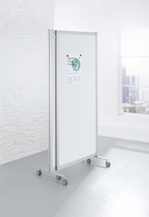 Mobile Faltstellwand, fahrbar, Whiteboard beschreibbar weiss