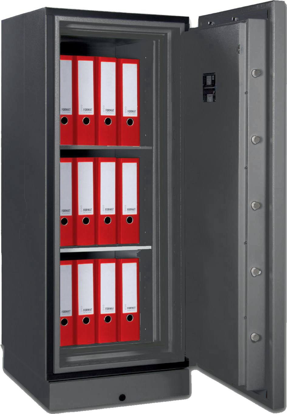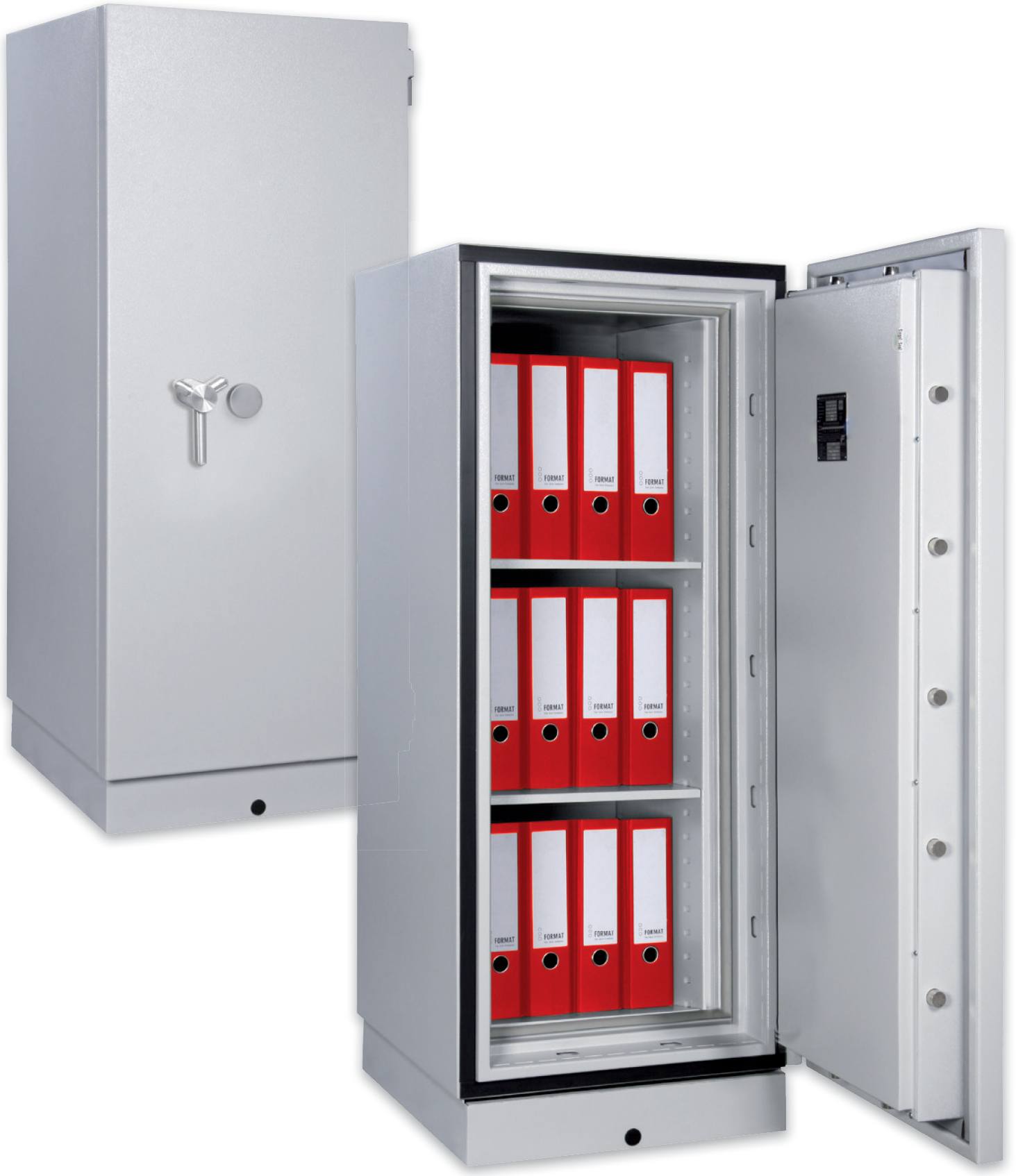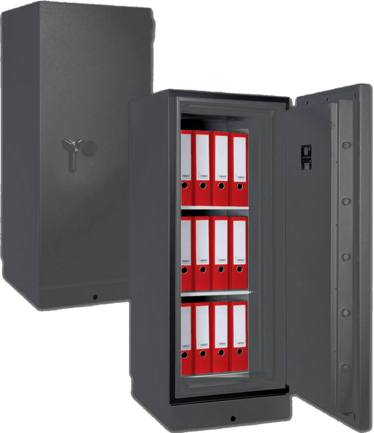Verschiedene Grössen je nach Modell und Ausführung (siehe Detailtext). Stahlblech mit gleicher Farbe wie Tresor/Safe beschichtet
