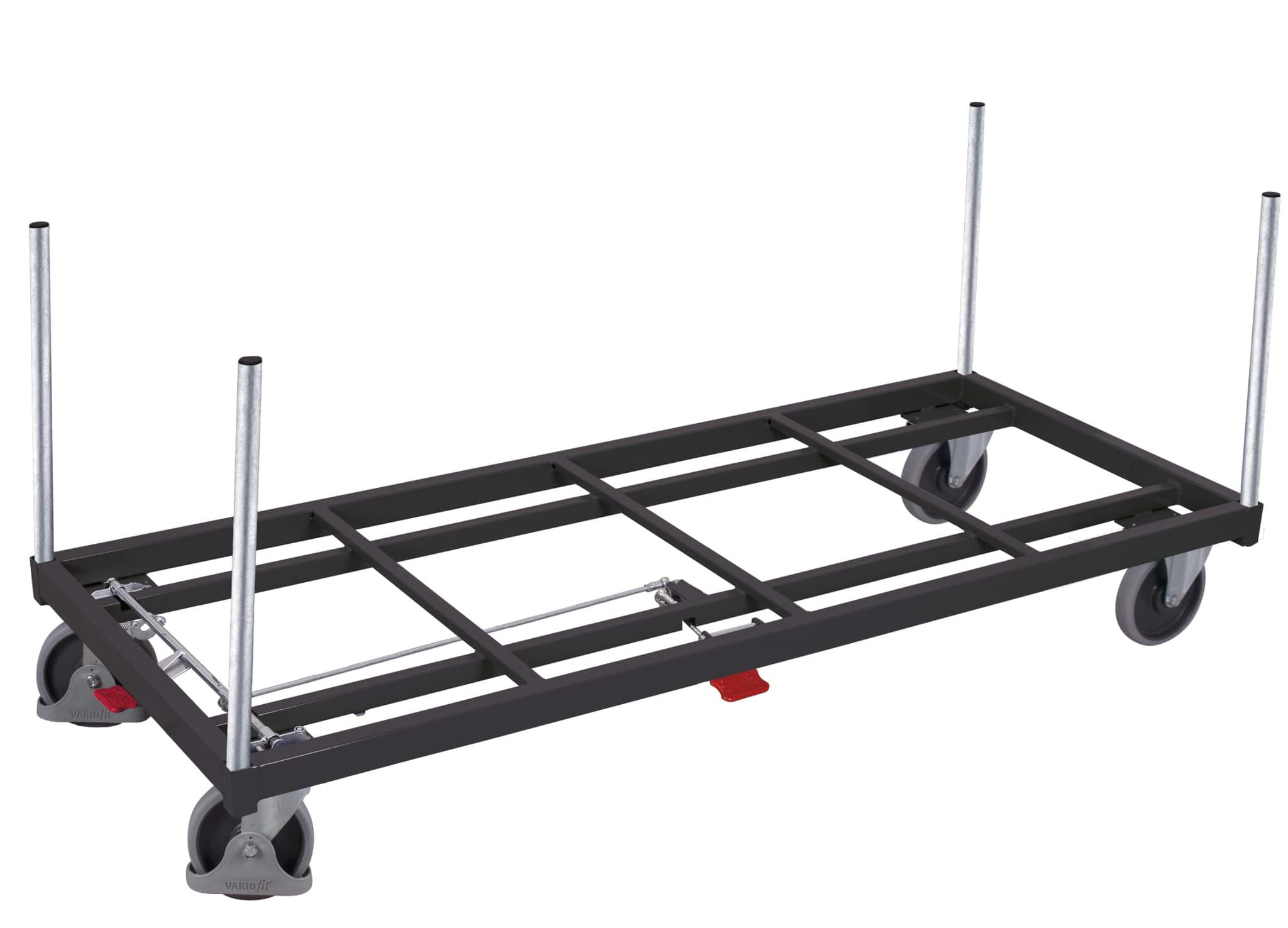 Bereifung aus thermoplastischem Gummi auf Kunststofffelge mit Präzisionsrillenkugellager, grau, spurlos, Ø 200 mm, 2 Brems- und 2 Bockrollen, Faden- und Fußschutz, EasyStop (Zentralbremssystem), Bremsrollen mit Fussschutz