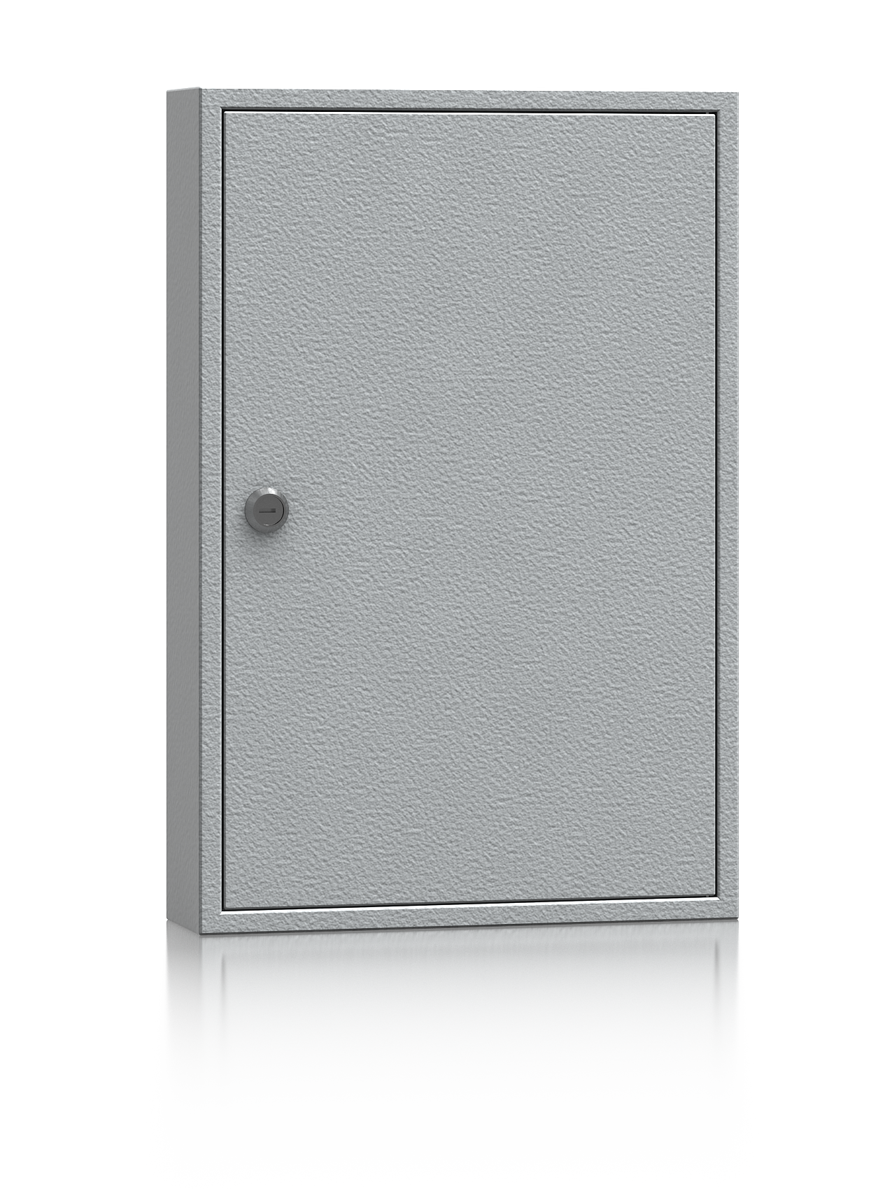 450x300x80 mm HxBxT, Zyl-Schloss 2 Schl., Stahlblech einwandig, verzinkt + pulverbeschichtet, galvanisch verzinkte Hakenleisten im Raster verstellbar, schwenkbare Schlüsselregister, Bohrungen zur Wandbefestigung inkl. Montagematerial, RAL 7035 lichtgrau