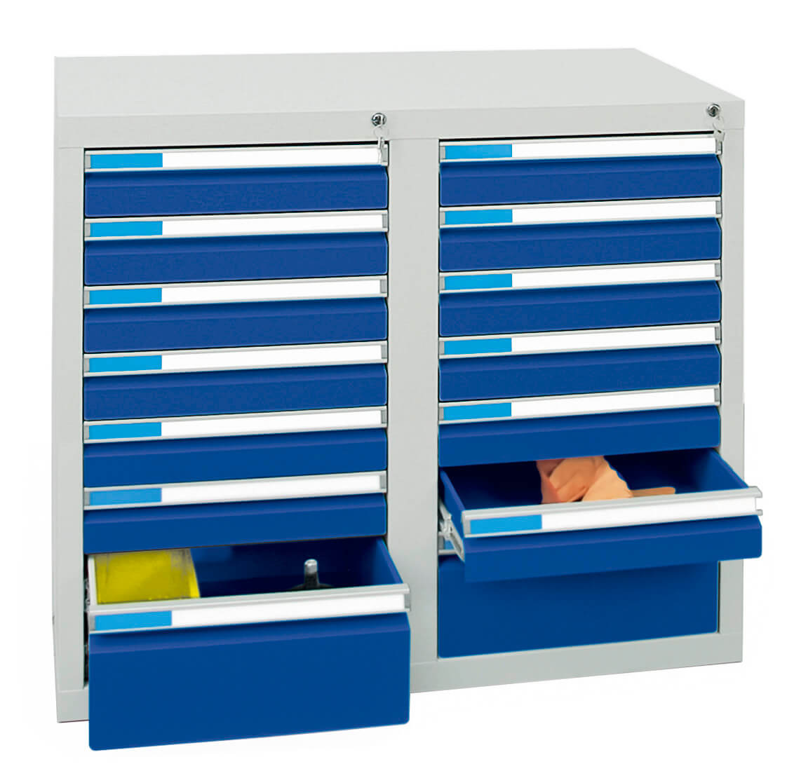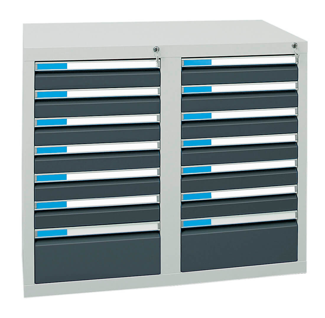 für 100 mm hohe Schubladen, Zubehör Einteilungs-Set, 1/2 verzinkt, 6-teilig, 100 mm hoch, bestehend aus folgenden verzinkten Stahlelementen: 2 x Tiefenprofile Typ A1 (je 195 mm breit) und 4 x Quertrenner Typ A1. Mit diesem Set wird die Schublade in 6 tiefenvariable, 195 mm breite Fächer unterteilt. Nur Versandkostenfrei im Zusammenhang mit einer Schrankbestellung.