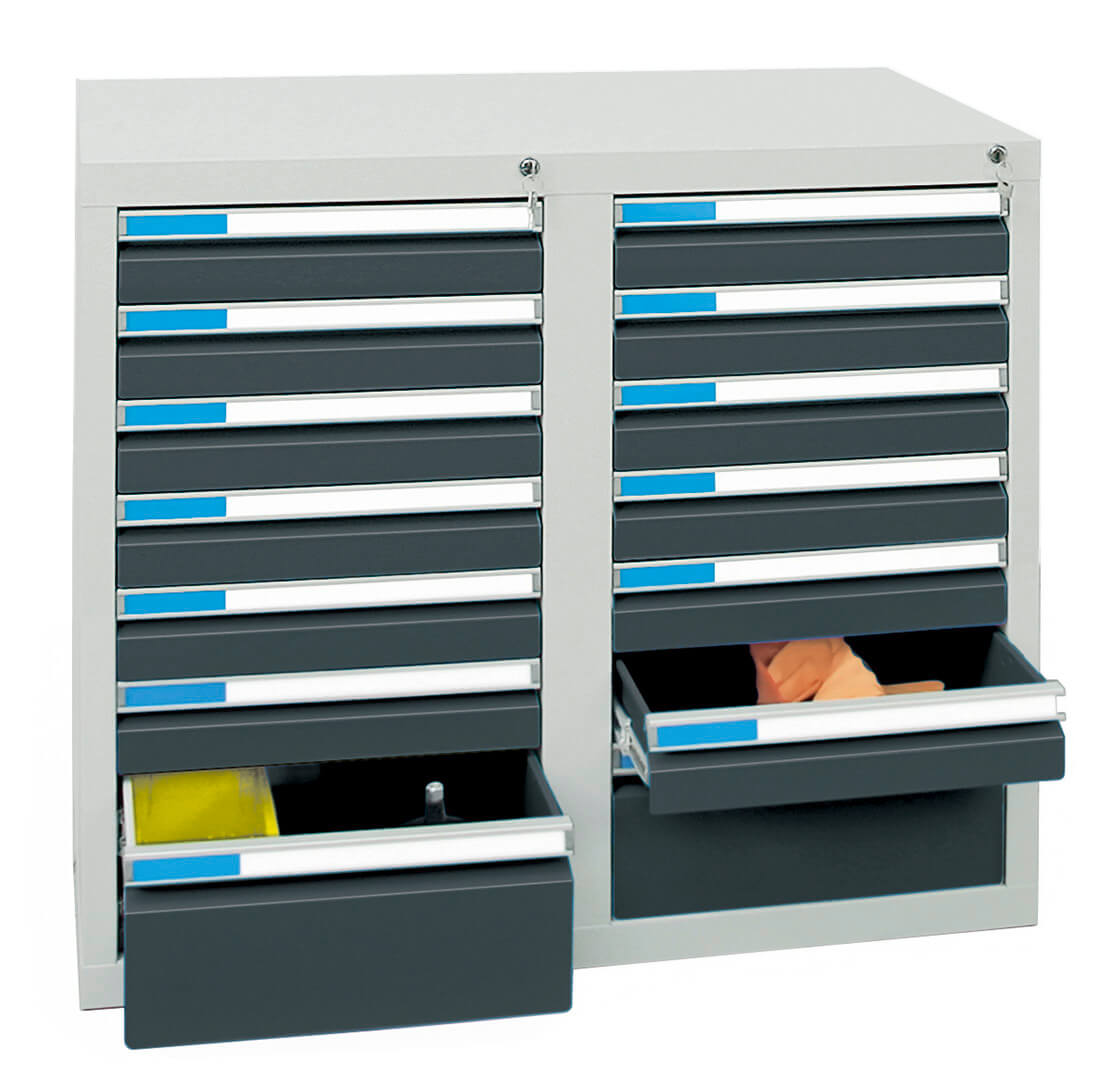 für 100 mm hohe SchubladenZubehör Einteilungs-Set universal, verzinkt, 12-teilig, 100 mm hoch, bestehend aus folgenden verzinkten Stahlelementen: 1 x Tiefenprofil Typ A1 (195 mm breit), 2 x Quertrenner A1, 1 x Tiefenprofil C1 (97 mm breit) , 2 x Quertrenner C1, 2 x Tiefenprofile D1 (je 48 mm breit), 4 x Quertrenner D1. Mit diesem Set wird die Schublade in insgesamt 12 tiefenvariable Fächer unterteilt (3 x 195 breit, 3 x 97 mm breit, 6 x 48 mm breit). Nur Versandkostenfrei im Zusammenhang mit einer Schrankbestellung.