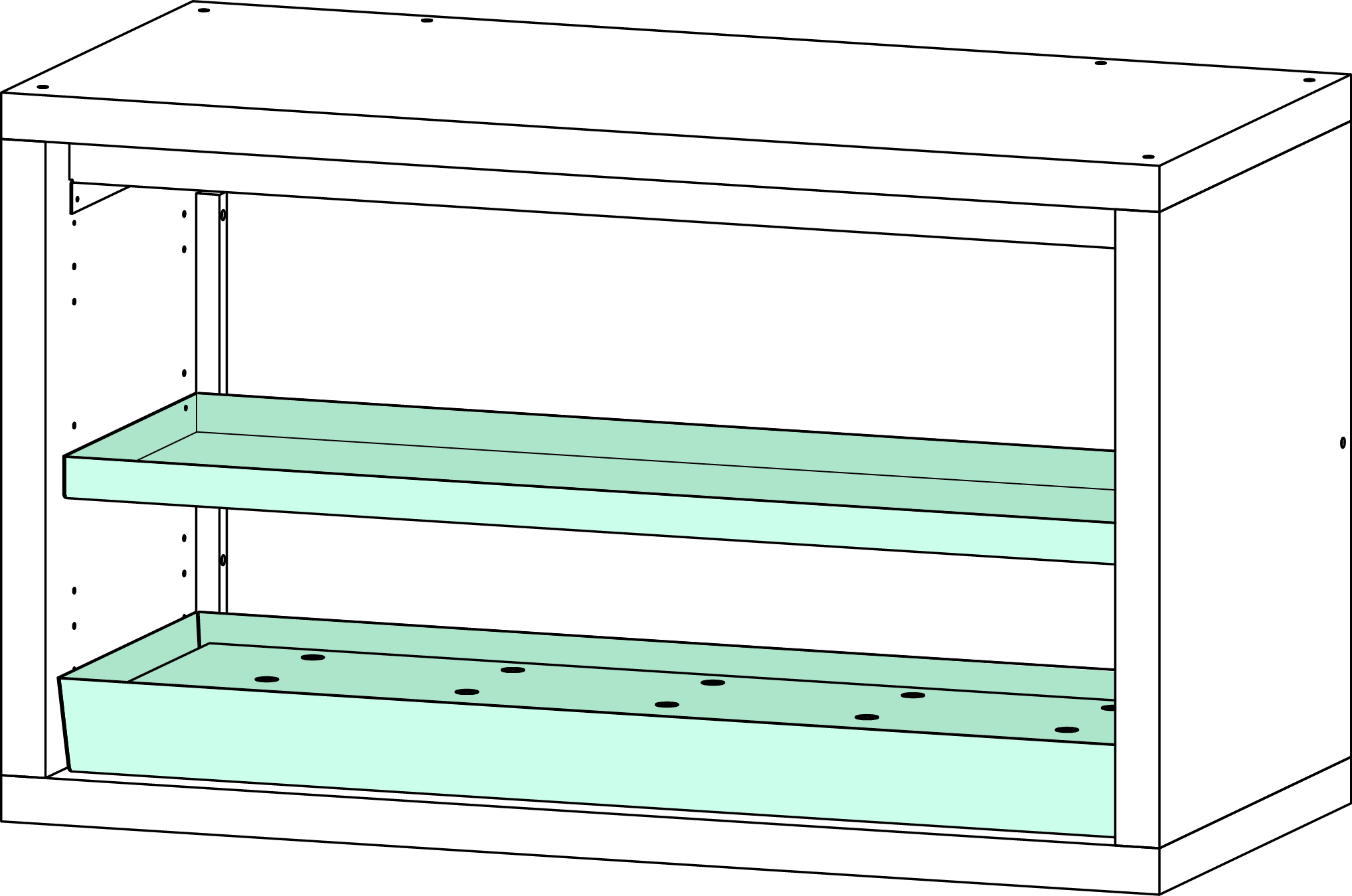 selbstschließende Be- und Entlüftungsöffnungen auf der Schrankoberseite, Anschlüsse DN 100 mm