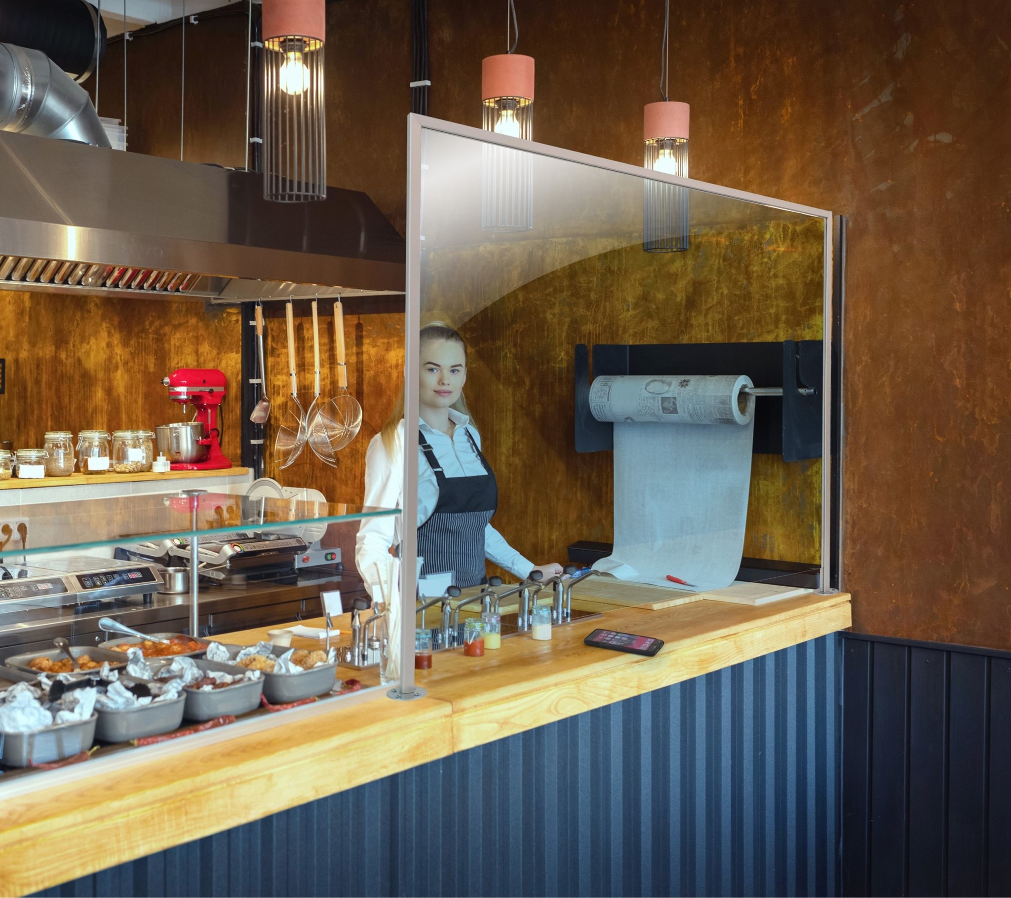 Spuckschutz / Schutzwand FREISTEHEND, 1190x18(380)x910mm (B/T/H)