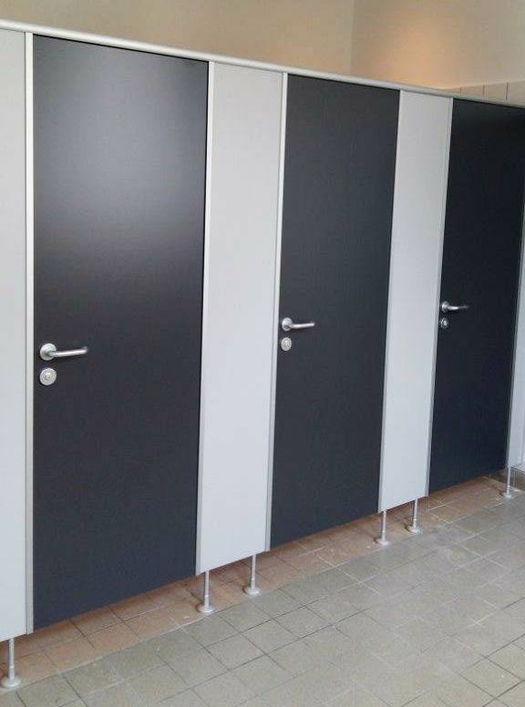 Hochwertige Trennwandsysteme in 13 mm HPL, 28 mm und 40 mm Plattenstärke für Erwachsene und Kinder lieferbar.
