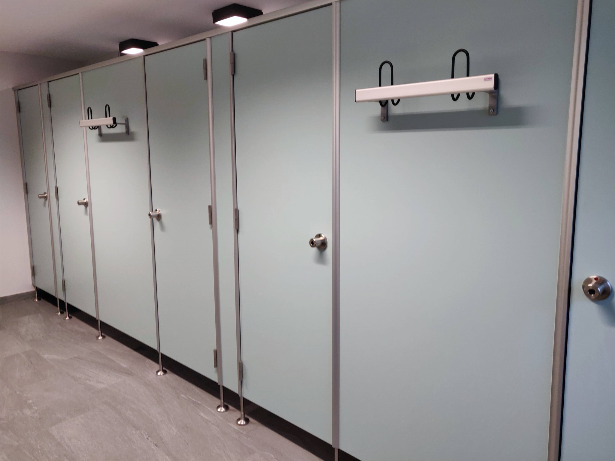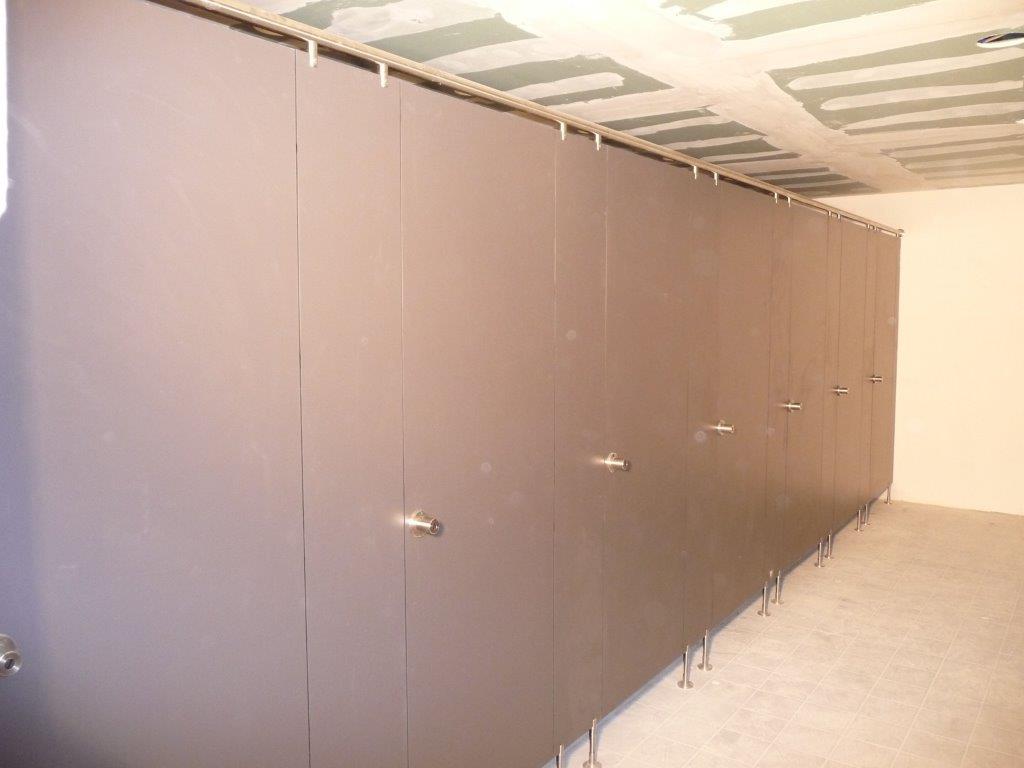 Trennwandanlage mit 28 mm Stärke und extra robuster Oberfläche (HPL beschichtet) für erhöhte Beanspruchung für den Einsatz in Trockenräumen, nicht geeignet für feuchte Umgebungen.