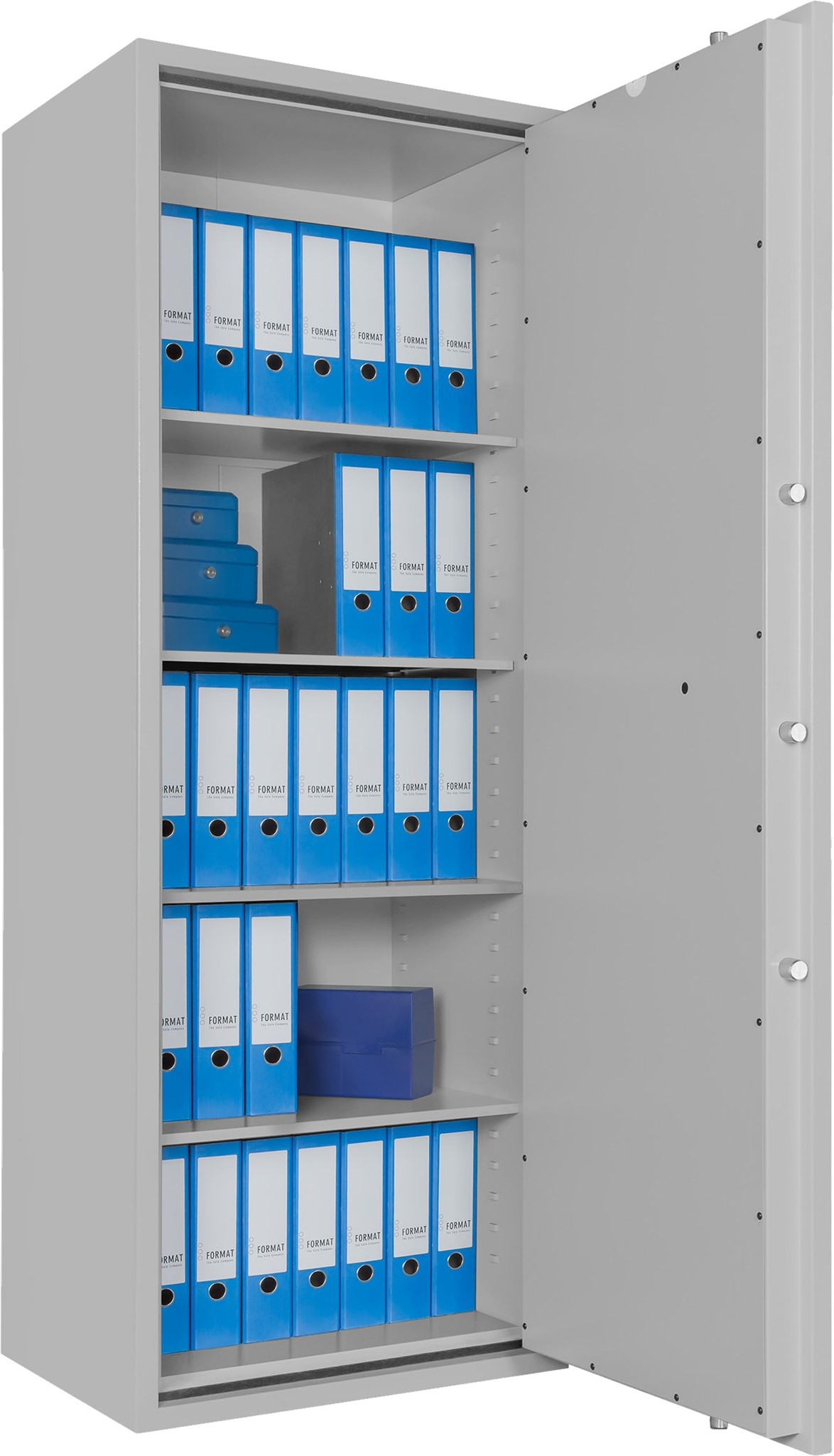 Aktenschrank mit Feuerschutz gem. DIN 4102. Hohe Modellflexibilität, grosse Zubehöroptionen und mögliche individuelle Schlossauswahl.
