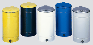 450x700 mm DxH, Deckelfarbe silber, Fusspedal, pulverbeschichtet grau, Einfüllöffnung ca. 350 mm, Kunststoffdeckel und einem Klemmring für die Abfallsackbefestigung, Lieferung im Karton verpackt