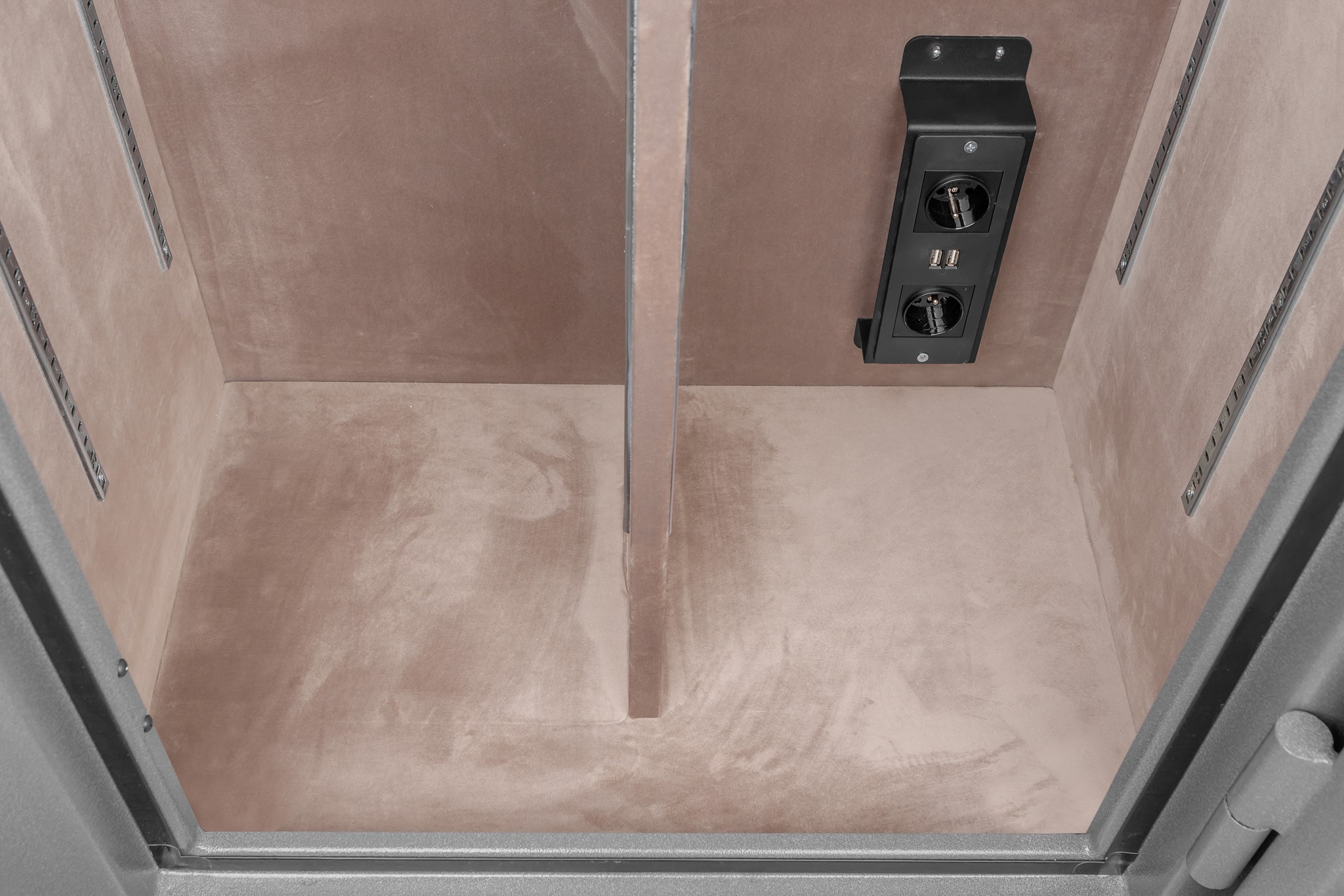 — oben 1 höhenverstellbarer Fachboden mit Seitlicher Aussparung für Langwaffen
