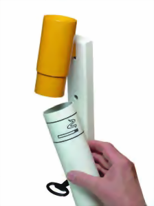 Wertstoffsammelstation WS 97 Korpus silber, runde Öffnung gelb, Klappe schwarzgrau, Schlitz blau