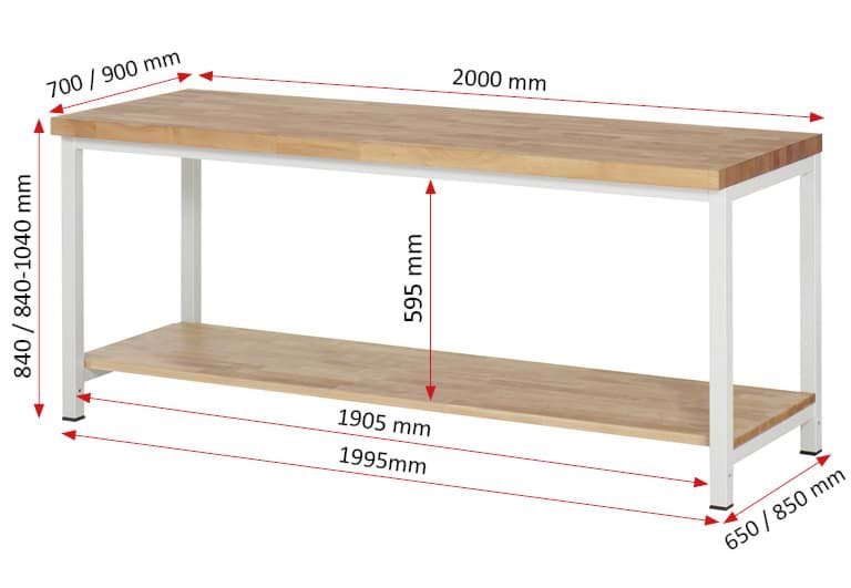 Werkbank verstellbare Höhe, 2500x700x840-1040mm LxTxH