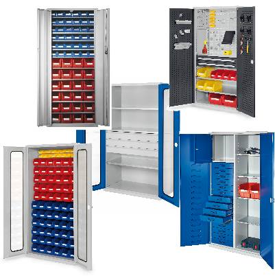 Alle Werkstattschränke sind vollständig verschweisst (kein Zusammenbau notwendig). Werkstattschränke haben eine sehr hohe Qualität und Stahlblechstärken von bis zu 1.25 mm. Werkstattschränke sind in vielen Standardausführungen und Farben lieferbar. Türen und Korpus sind bei vielen Werkstattschränken verstärkt. Alle Werkstattschränke sind pulverbeschichtet und einbrennlackiert. Sonderanfertigungen der Werstattschränke sind auf Anfrage lieferbar.