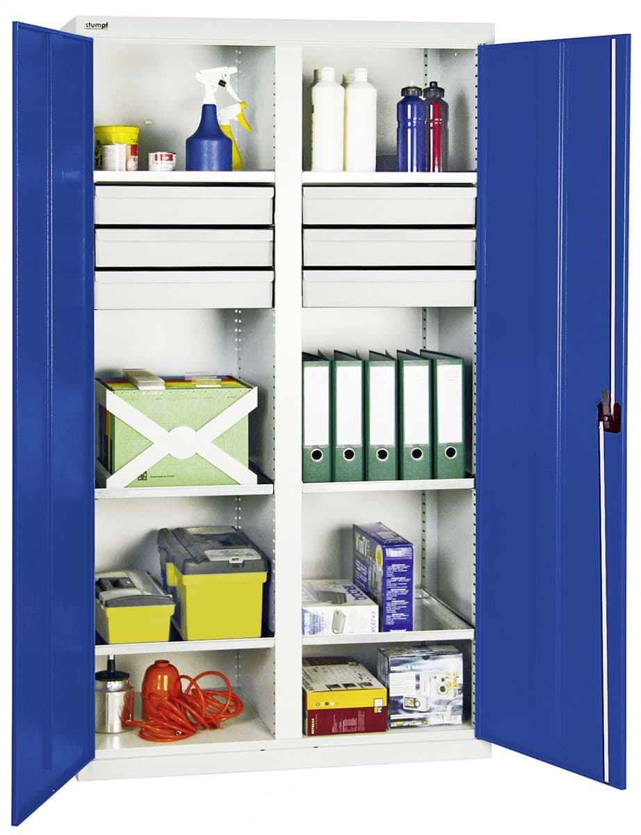 Werkstattschrank 1800 x 1000 x 500 mm HxBxT mit Trennwand und 6 Schubladen