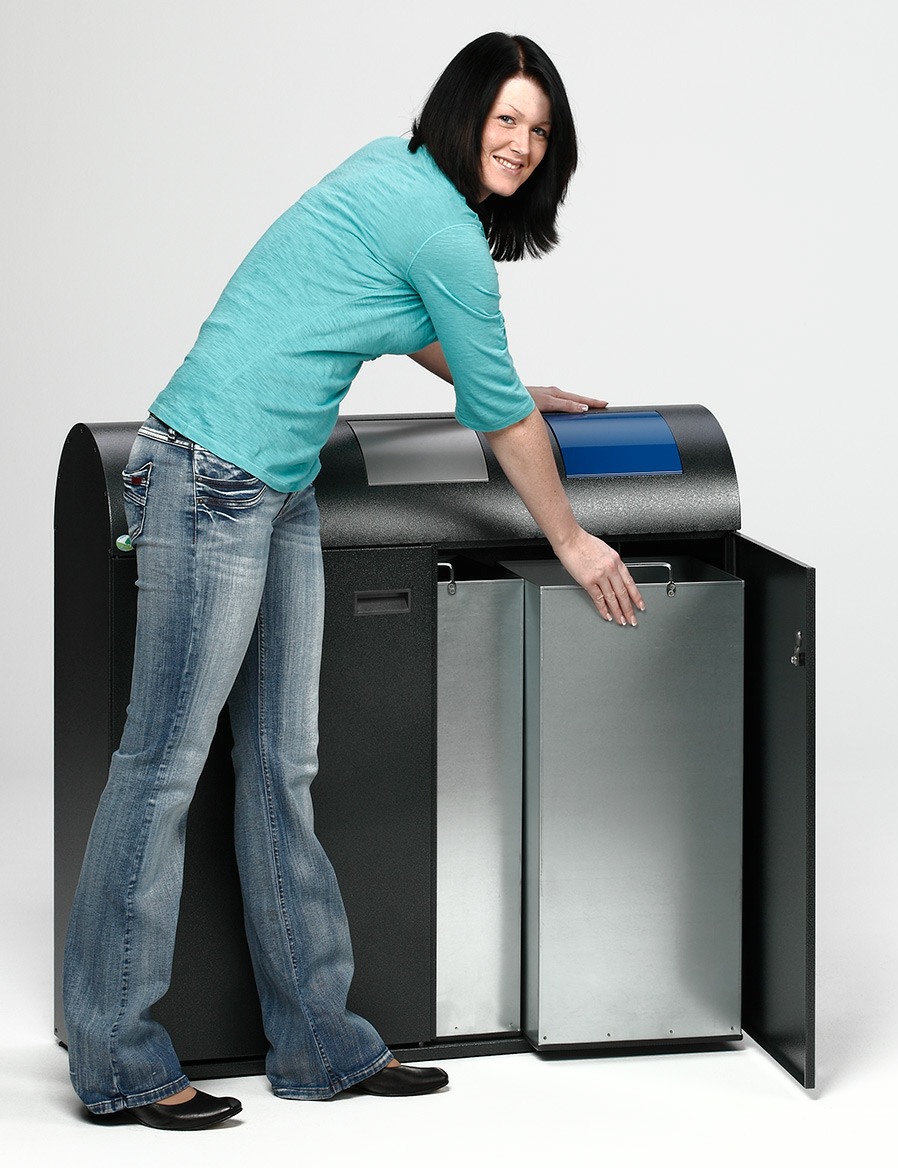 Logo auf selbstklebender Transparenzfolio, 85x85 mm LxB, versandkostenfrei nur zusammen mit einer Abfallbehälterlieferung, zum selber aufkleben.