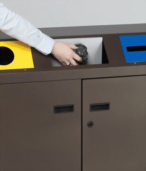 Logo auf selbstklebender Transparenzfolio, 85x85 mm LxB, versandkostenfrei nur zusammen mit einer Abfallbehälterlieferung, zum selber aufkleben.